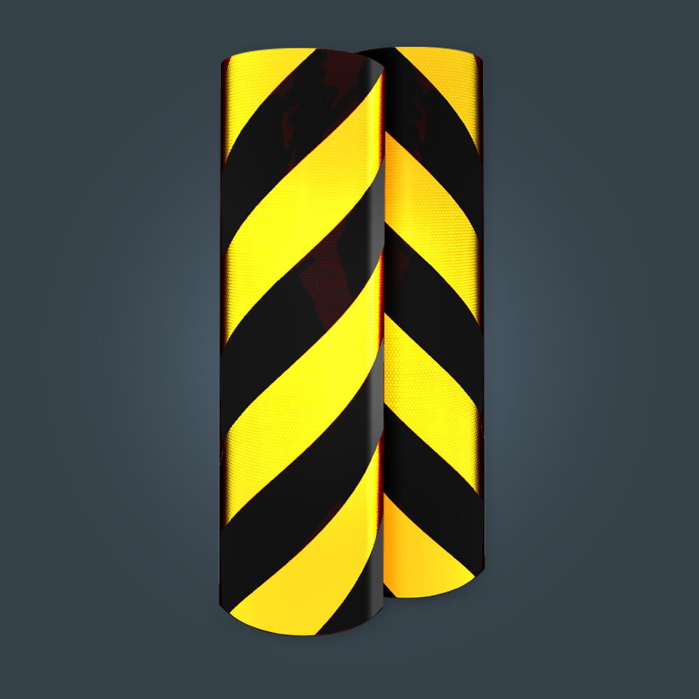 Orafol ORALITE Industrie Warnmarkierung 5831 nach DIN 4844 - RA2/B Reflexfolie - für Hindernisse und Gefahrenstelle, diese sind gemäß BGV A8 mit einer deutlich erkennbaren und dauerhaft ausgeführten Warnmarkierung zu kennzeichnen. Mit gelb-schwarzen teil-reflektierenden Orafol Oralite-Warnstreifen werden feststehende Gefahrenstellen/Hindernisse markiert.