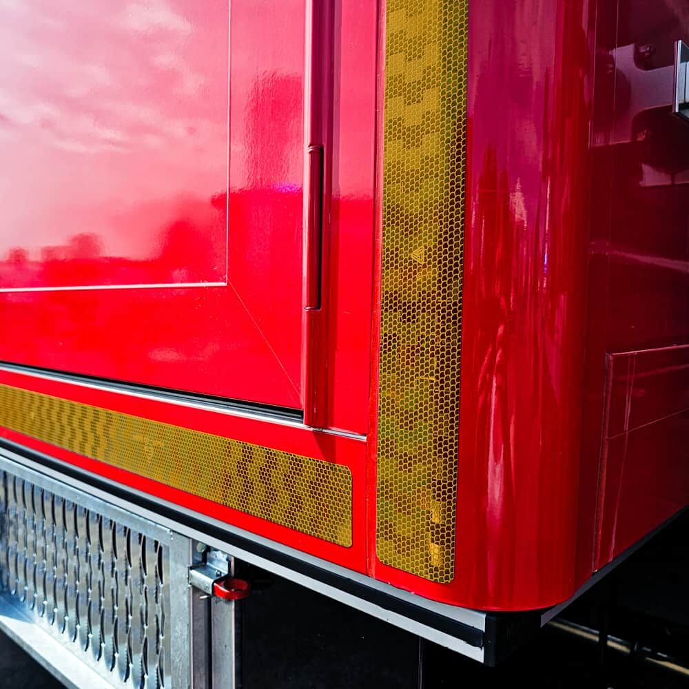 Konturmarkierung zur Kennzeichnung der Umrisse von LKW und Anhängern/Aufliegern für Festaufbauten gemäß der Vorschrift ECE R 104