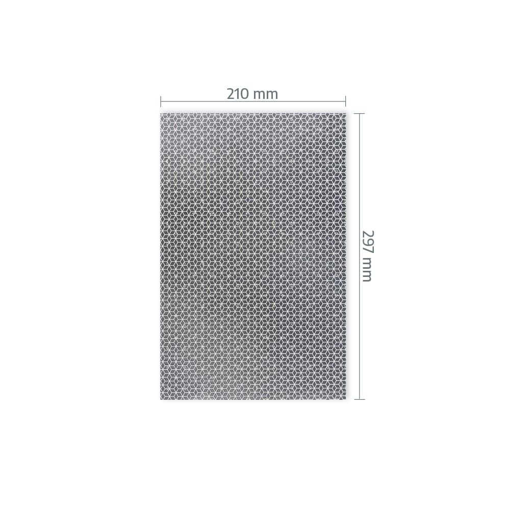 Sie erhalten eine auf DIN A4- oder DIN A3-Format zugeschnittene Reflexfolie ORALITE VC 170 Universal Film von Orafol. Dies ist eine mikroprismatische Multifunktionsreflexfolie für den Einsatz im Außenbereich.