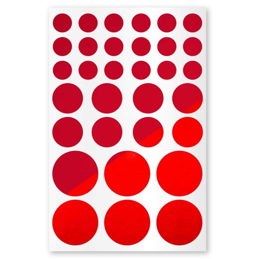 Durchmesser der Sticker: 18 Kreise je 12,5 mm, 8 Kreise je 20 mm, 6 Kreise je 30 mm