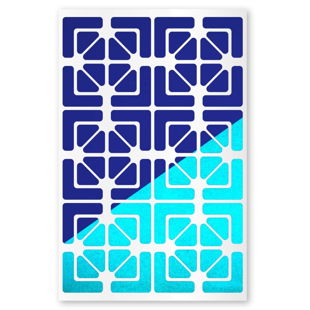 Maße der Sticker: 24 Ecken je 22,5 mm x 22,5 mm, 48 Dreiecke je 12 mm x 12 mm