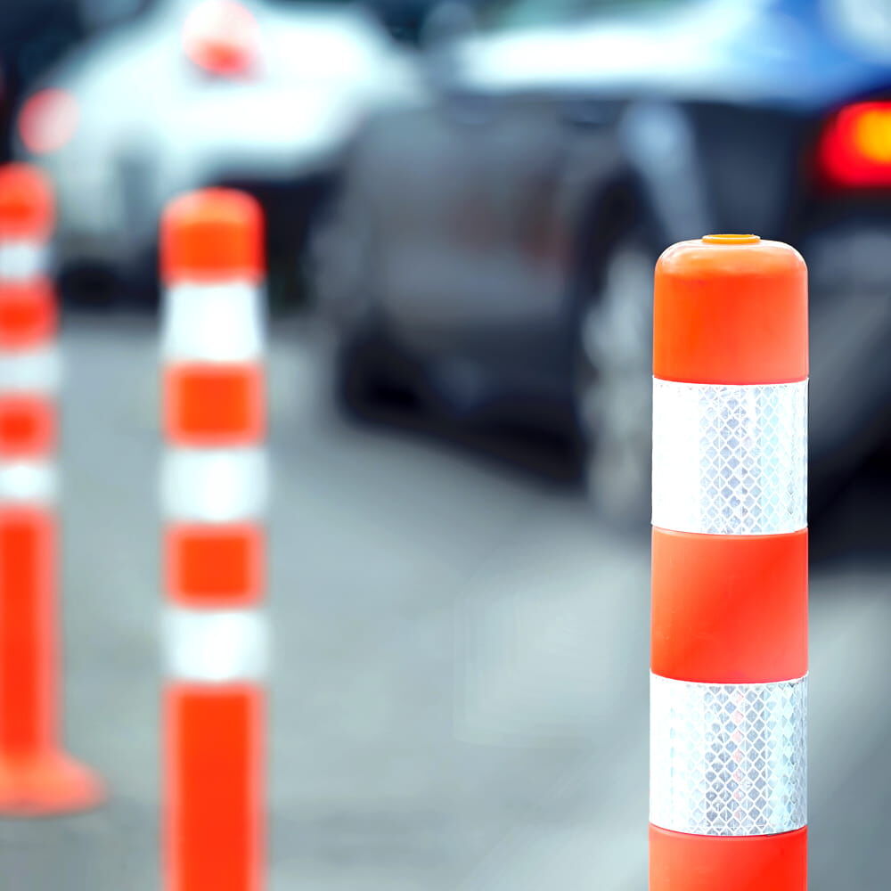 • Markierungen im Außenbereich, z. B. Toreinfahrten, Schranken, Poller, Pfosten