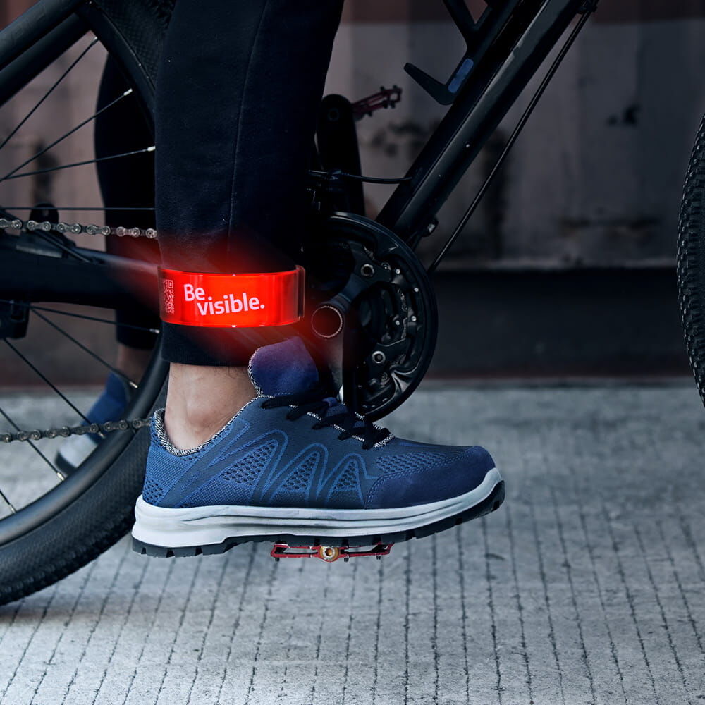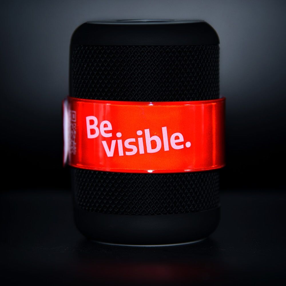 Reflektierendes Schnapparmband mit Aufdruck „Be Visible.“ Für mehr Sichtbarkeit beim Joggen, Radfahren oder Spazieren gehen