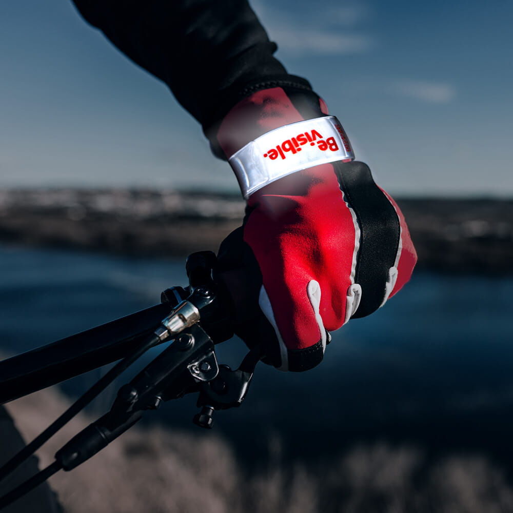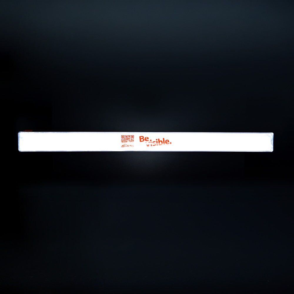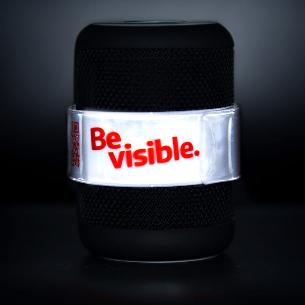 Reflektierendes Schnapparmband mit Aufdruck „Be Visible.“ Für mehr Sichtbarkeit beim Joggen, Radfahren oder Spazieren gehen