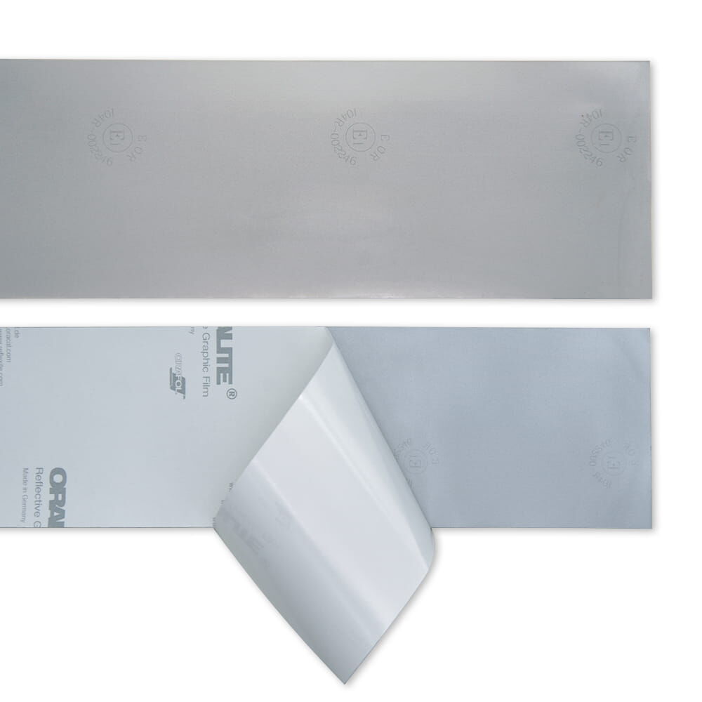 Das Reflexband ist aus der Fahrzeugfolie ORALITE 5600E von Orafol hergestellt. Die Reflexfolie erfüllt die Anforderungen der ECE-Regelung 104 für die Materialklasse E.