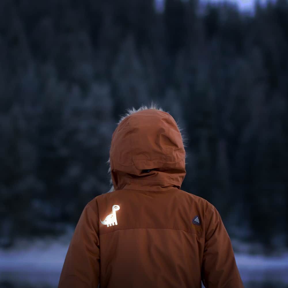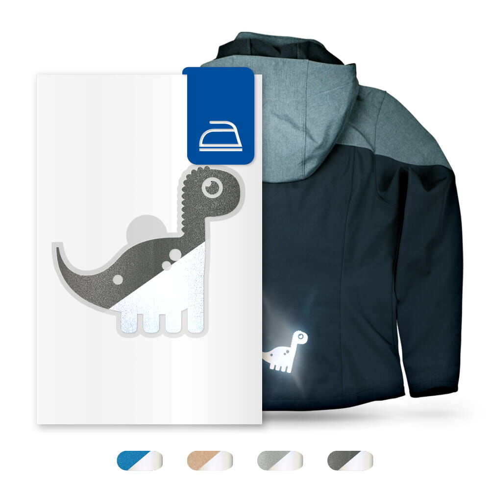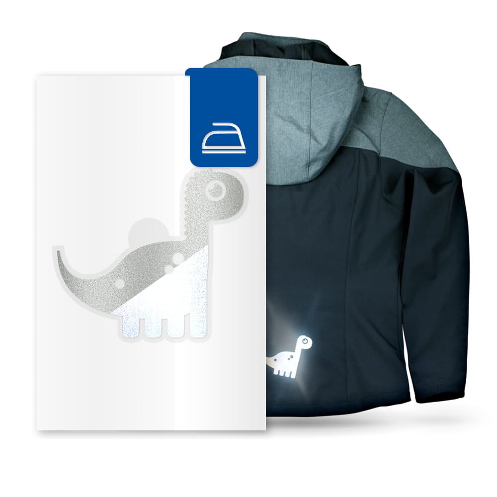 Produkteigenschaften reflektierendes Bügelbild Dino