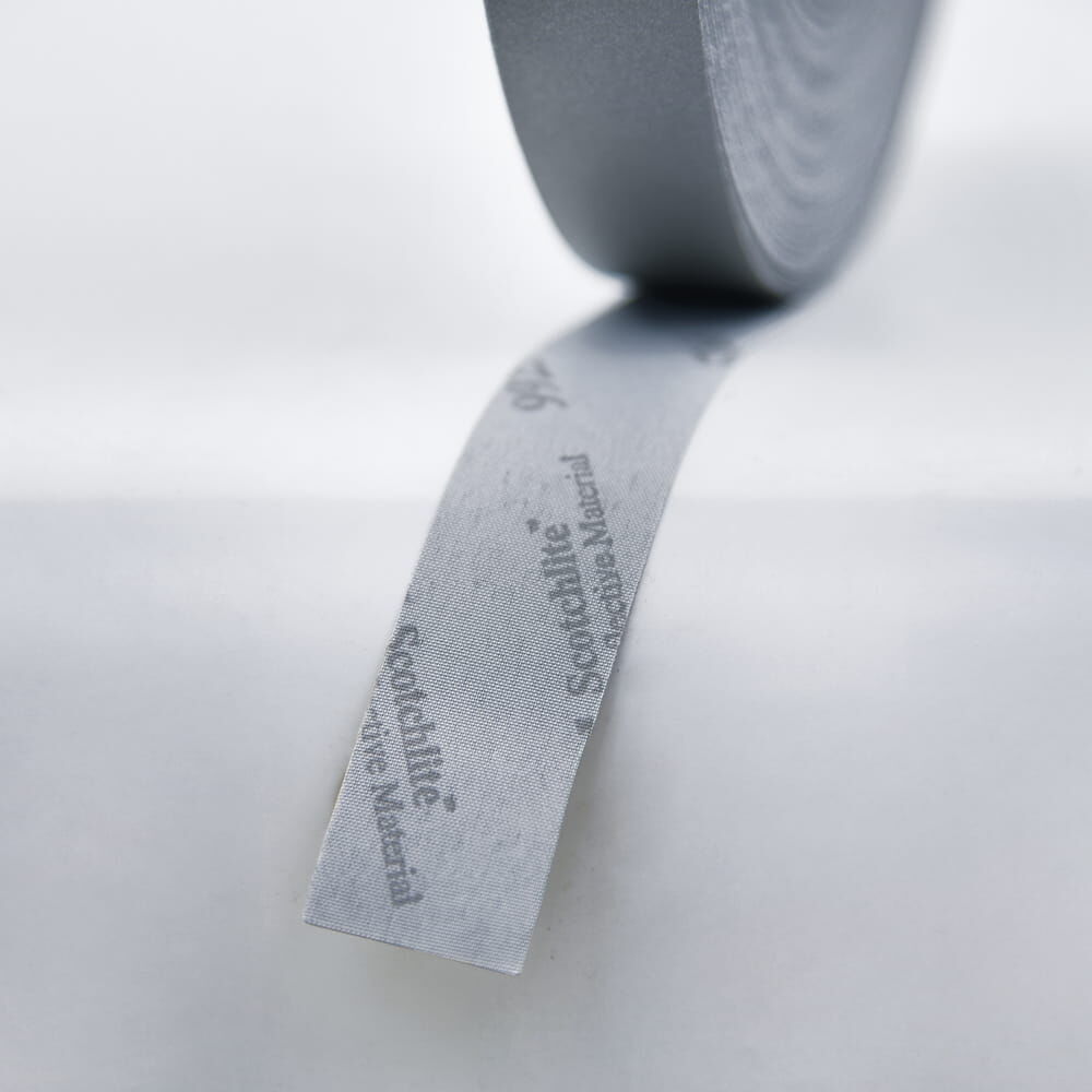 Reflexgewebe Scotchlite 9925+ von 3M zum Aufnähen auf Warnschutzkleidung, Arbeits- oder auch Freizeitkleidung. Die Vorderseite des Textilgewebes besteht aus einer reflektierenden Folie mit Glaskugelaufbau.