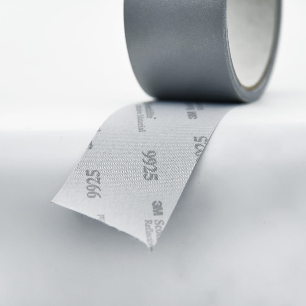 Reflexgewebe Scotchlite 9925+ von 3M zum Aufnähen auf Warnschutzkleidung, Arbeits- oder auch Freizeitkleidung. Die Vorderseite des Textilgewebes besteht aus einer reflektierenden Folie mit Glaskugelaufbau.