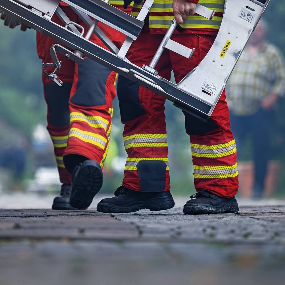Löschwasser fließt deutlich schneller ab und sammelt sich nicht auf den Streifen. Ein besserer Tragekomfort ist ein weiterer positiver Effekt dieser Beschaffenheit.