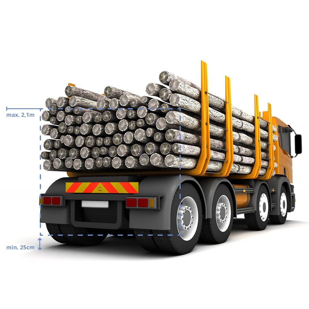 Die Heckwarntafel für Lastkraftwagen und Zugmaschinen ist eine sogenannte Vollmarkierung und misst 1130 x 132 mm.