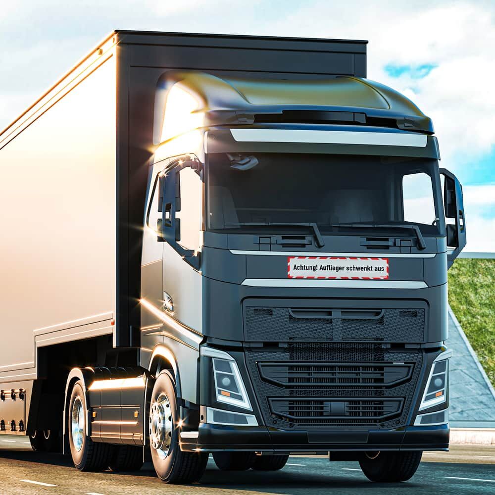 Achtung! Auflieger schwenkt aus selbstklebend