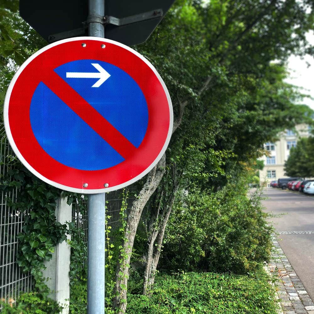 Passgenauer Verkehrszeichenfolien-Zuschnitt mit Sinnbild VZ 286-10 Eingeschränktes Haltverbot (Anfang), Aufstellung rechts