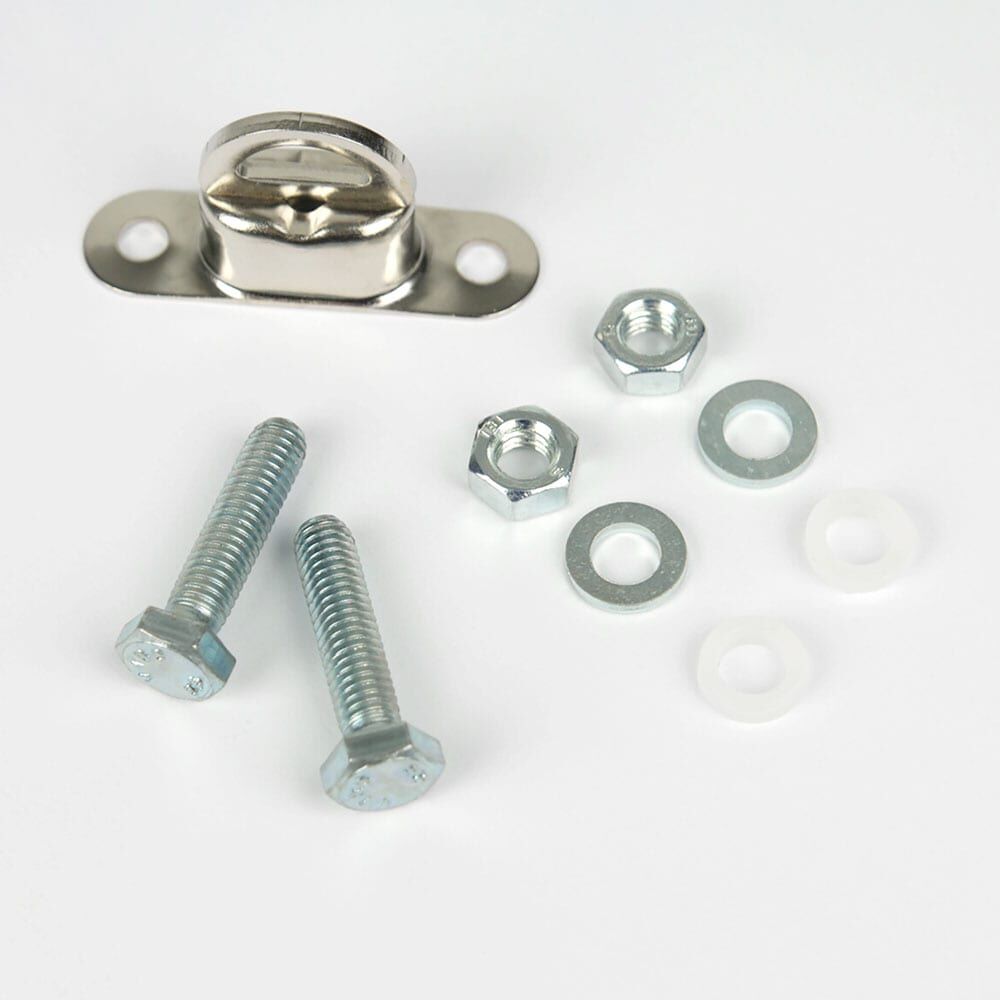 Lieferumfang: Abfallschild mit Zusatz-Drehwirbel für die Fahrzeugbefestigung und Montageset