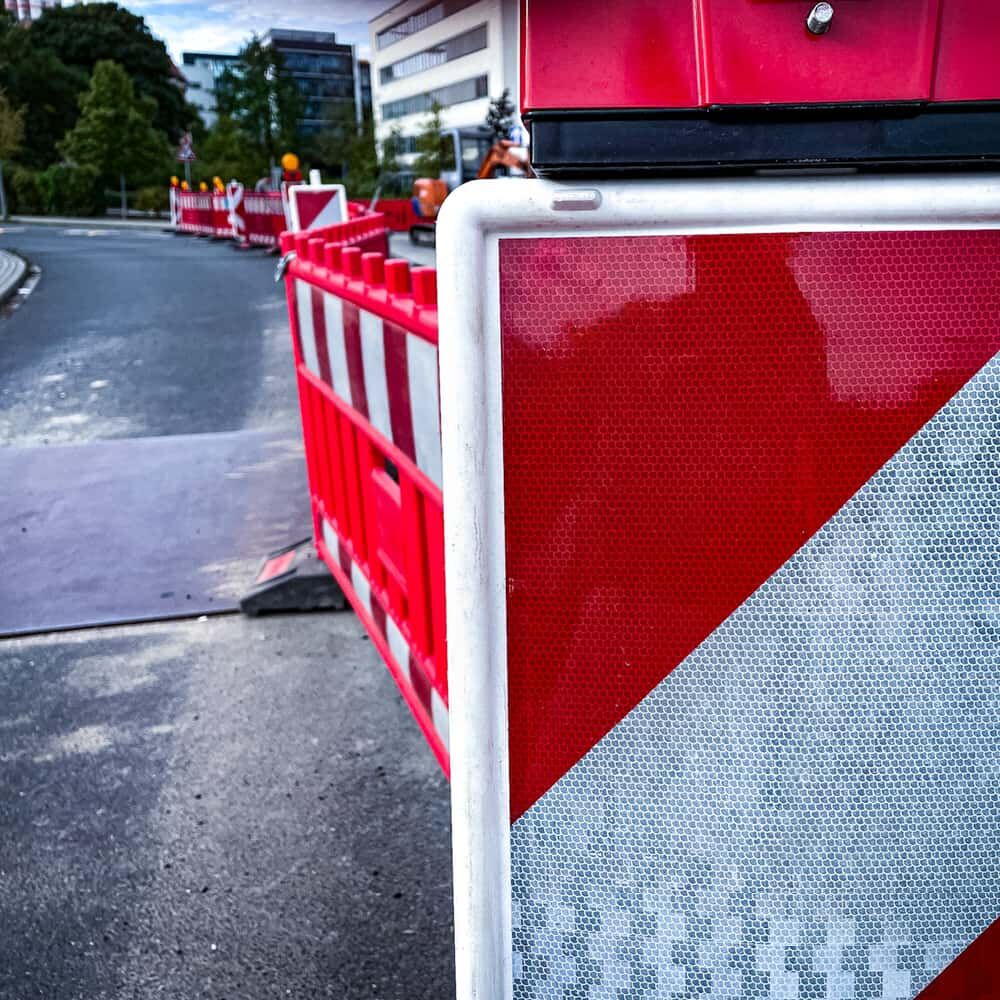 Avery Dennison W-3100 rot-weiße Warnmarkierung für Baustellenbaken in linksweisender und rechtsweisender Ausführung oder als Pfeil, speziell für Untergründe aus Kunststoff geeignet