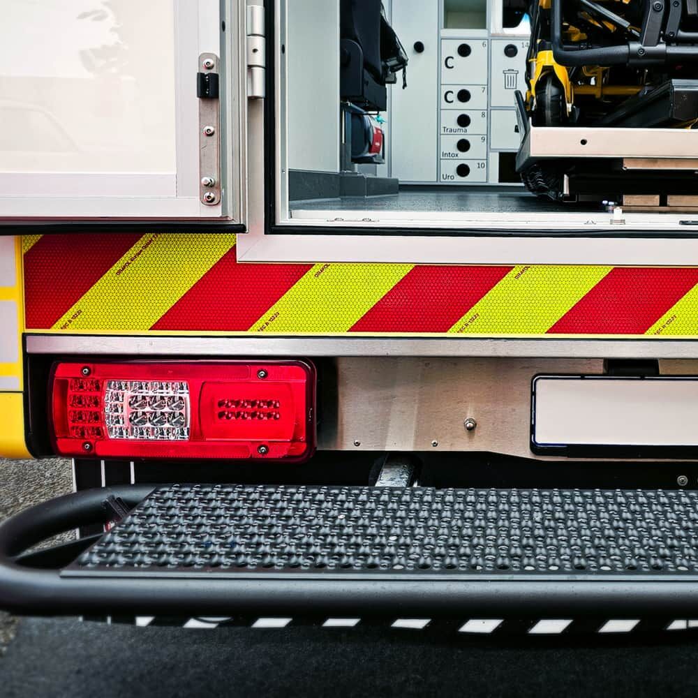 Orafol ORALITE VC 612 Flexibright Fleet Marking Grade ist eine strapazierfähige, witterungsbeständige Kennzeichnungsfolie, die für die Anwendung an Rettungsfahrzeugen entwickelt wurde. Das Material eignet sich zum Stanzen und Plotten und lässt sich auf glatten, lackierten und unlackierten Fahrzeugoberflächen leicht aufbringen. Eine Kantenversiegelung ist nicht erforderlich. Die flexible Kennzeichnungsfolie ist besonders anwenderfreundlich. Einzelsegmente können entfernt werden. Im Vergleich zu anderen prismatischen Folien wird eine deutlich geringere Anzahl an Einzelzuschnitten benötigt.
