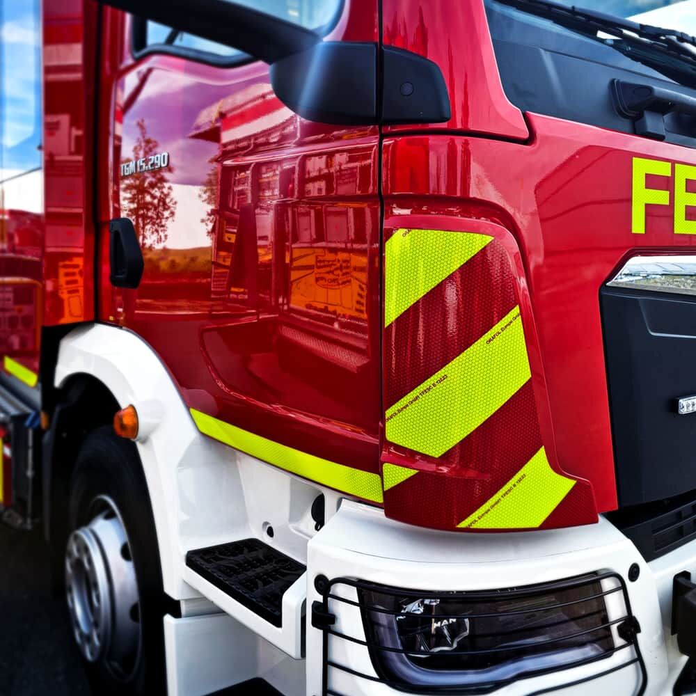 Die Orafol ORALITE VC612 Flexibright Fleet Marking Grade ist eine neuentwickelte, zweifarbige, mikroprismatische Warnmarkierungsfolie für Sonderfahrzeuge, Feuerwehr, Rettungsdienst gemäß französischem Feuerwehrstandard TPESC-B 13223.