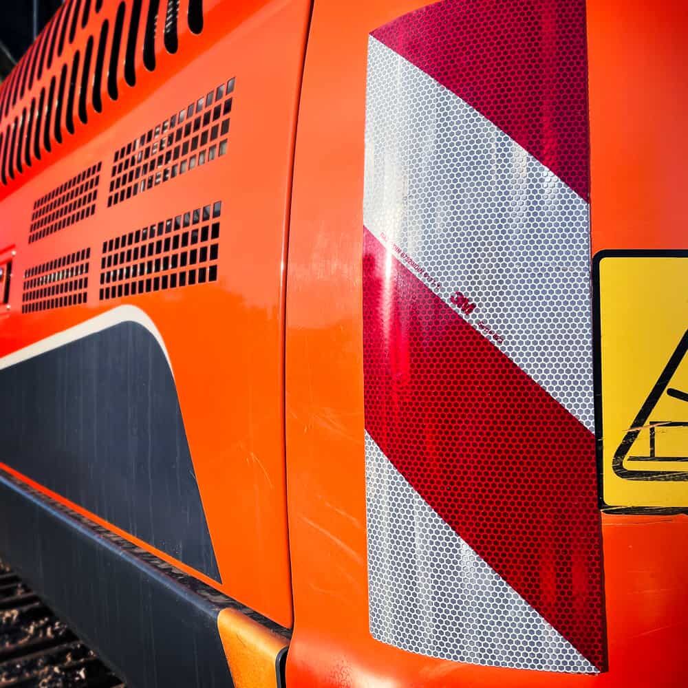 Die Reflexfolie muss auch nicht kantenversiegelt werden. Dank ihrer Flexibilität lässt sich die Folie außerdem sehr gut über Wölbungen oder Kanten verkleben, ohne Falten zu werfen oder aufzustauchen. Bei Bedarf lässt sich die Warnmarkierungsfolie mittels Wärme wieder vom Fahrzeug lösen.