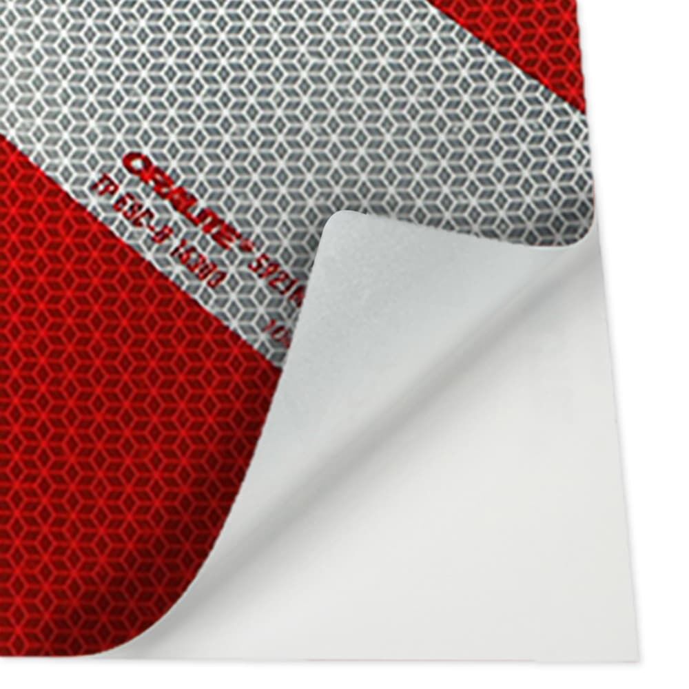 Mit ihrer Stärke von 0,28 mm ist die selbstklebende Reflexfolie sehr flexibel und lässt sich bequem über Wölbungen und Kanten verkleben – ideal für Fahrzeuge! Mittels Wärme lässt sich die Warnmarkierung sogar wieder entfernen.
