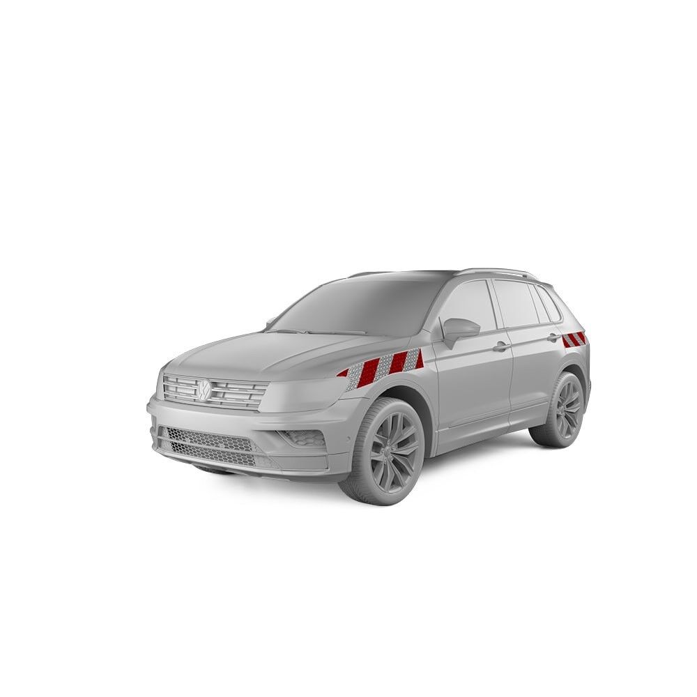Die passgenauen Warnmarkierungszuschnitte für den VW Tiguan Baujahr 2016 - 2020 sind als Set für die vollständige Markierung ihres Fahrzeugs erhältlich oder als einzelne Komponenten für Heck, Front oder die Seiten.