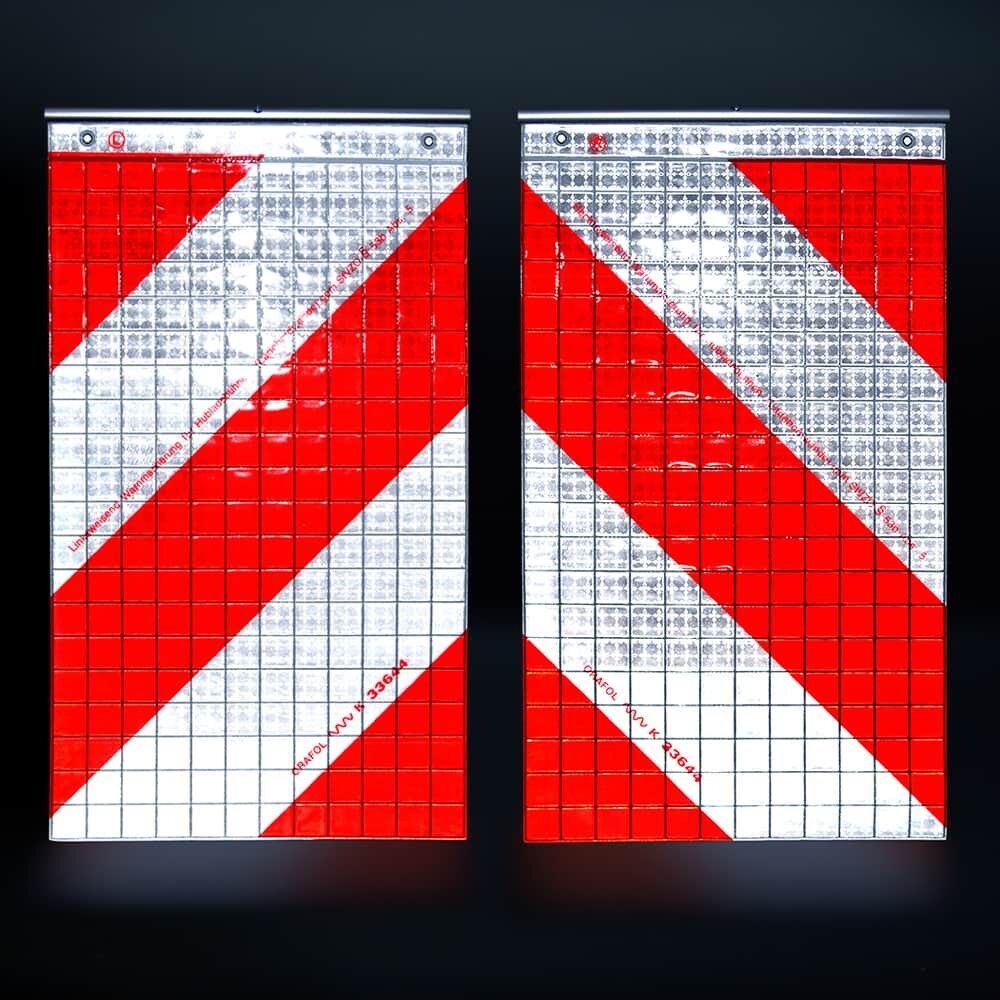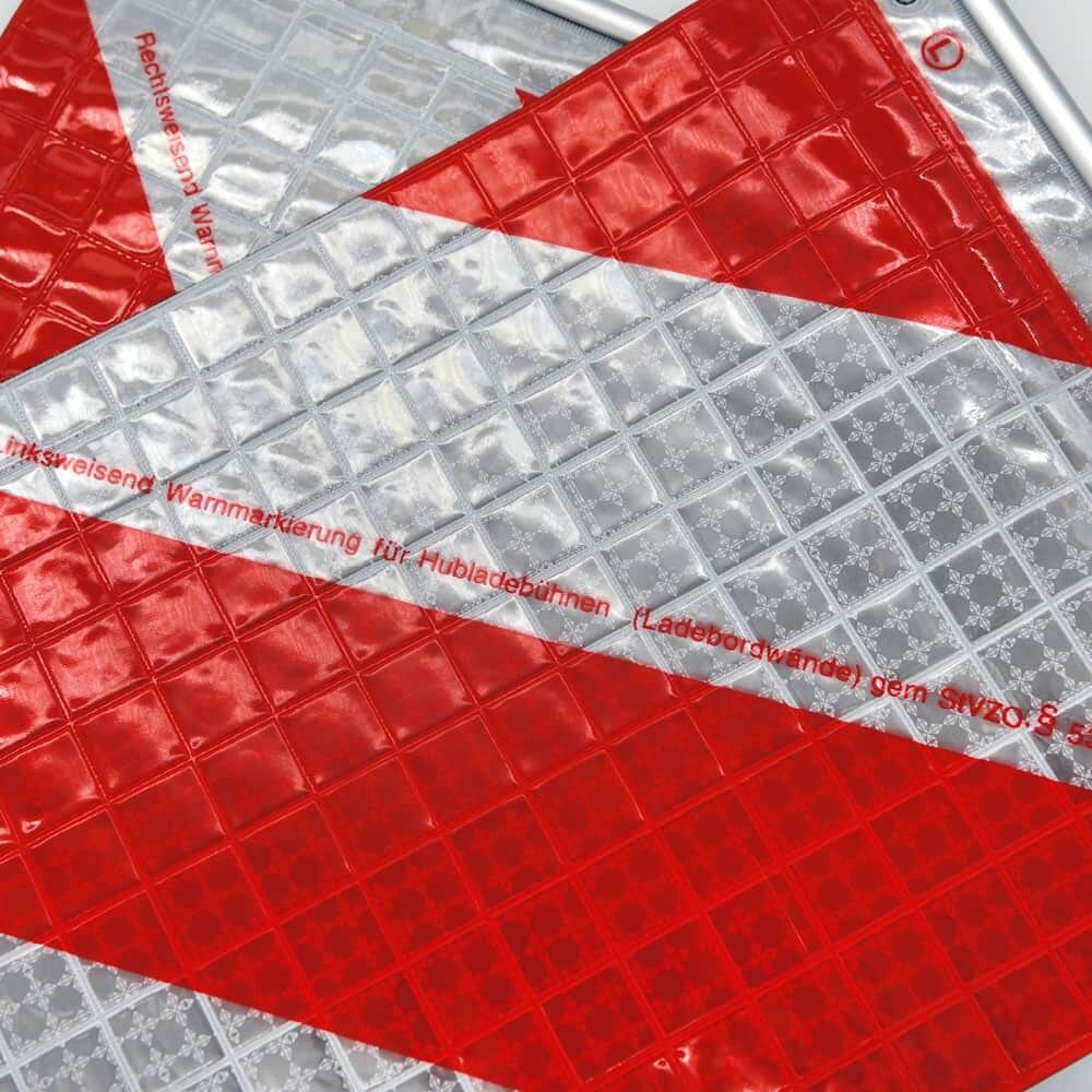 Warnmarkierungen für Hubladebühnen/Ladebordwände gemäß § 53b StVZO, 2er-Set Warnflaggen mit oder ohne Halterung