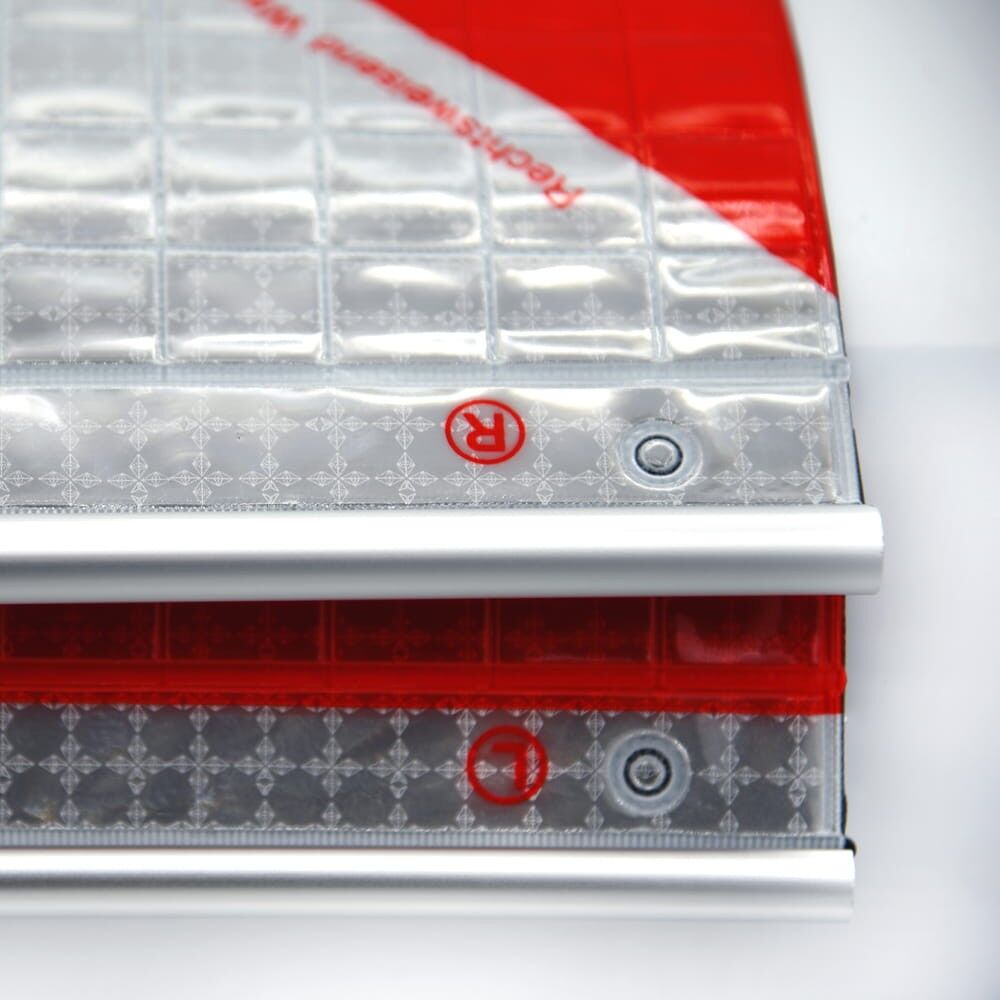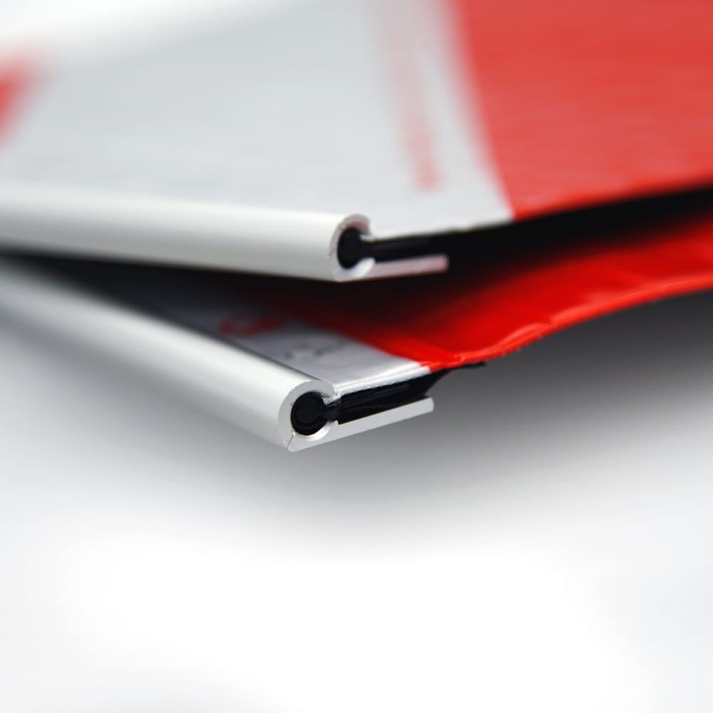 • Halterungsschiene aus Aluminium bietet festen Halt der Reflexfolie, Fahne bleibt auch bei täglicher Beanspruchung sicher in der Befestigung