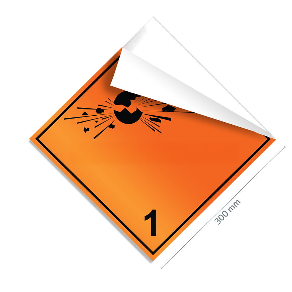 ADR Gefahrzettel Klasse 1 Explosive Stoffe und Gegenstände 300 x 300 mm selbstklebend