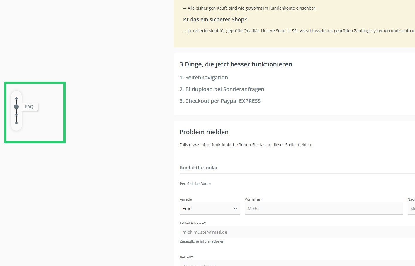 Falls etwas nicht funktioniert, können Sie das an dieser Stelle melden.