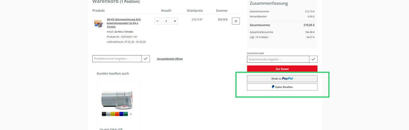 Mit PayPal EXPRESS schließen Sie Ihre Bestellung jetzt noch schneller ab – ohne lange Formulare, mit den in PayPal hinterlegten Daten.