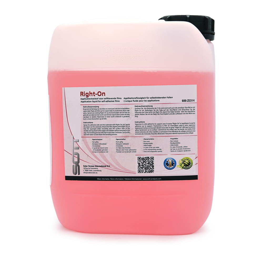 Das „Right on“-Applikationsflüssigkeit von SOTT ist die optimale Hilfe zur besseren Positionierung bei der Verklebung von Fahrzeugfolien auf der Karosserie.