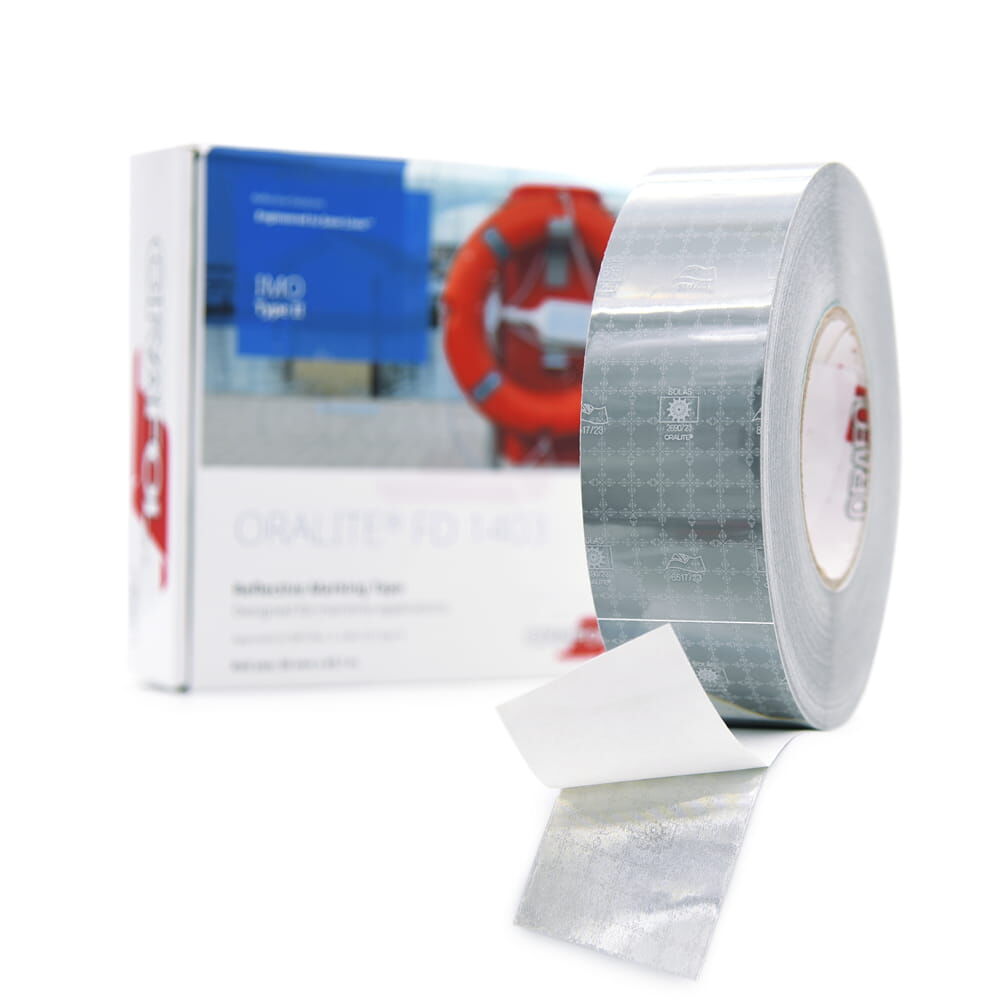 Leistungsstarkes Reflexband für maritime Einsätze aus Hochleistungsfolie Orafol-Folie ORALITE FD1403, zur Markierung Seenotrettungsmitteln wie z.B. Rettungsringe, Schwimmwesten, Rettungswesten oder von Schiffen und Bojen.