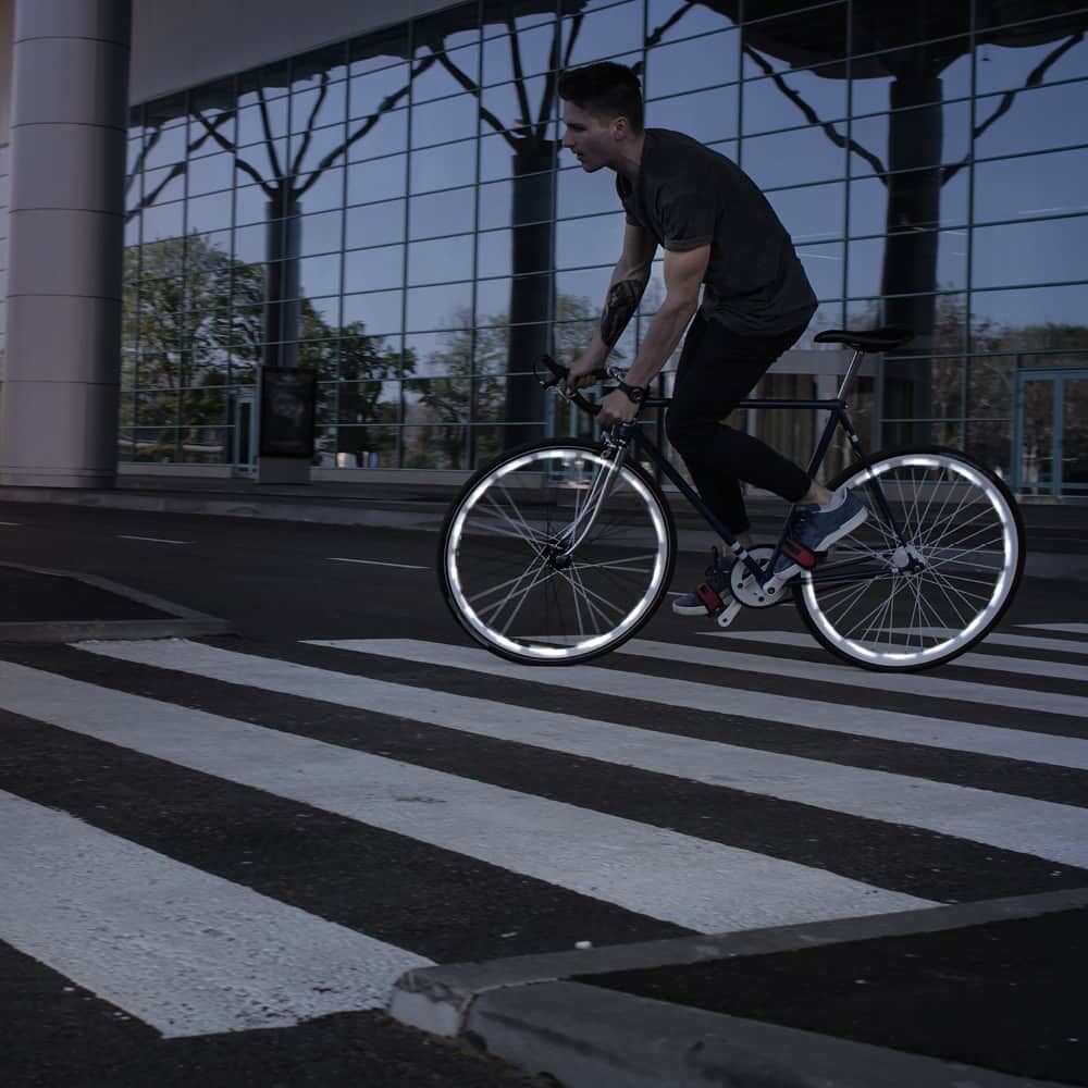 Die reflektierenden Felgensticker können ganz einfach zwischen den Speichen platziert werden, die Form ermöglicht Reflexion auf beiden Seiten des Rades. Die Sticker sind ebenso für die Einsatz am Fahrradrahmen geeignet.