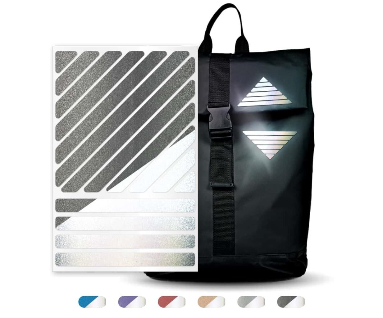 Metallic Reflexsticker eigen sich zur Verwendung auf Taschen, Rucksäcken, Beutel, Schuhen, Regenschirmen, Fahrrädern, Rollern, Rollstühlen, Kinderwagen, Zelten, Regenjacken, Helmen.