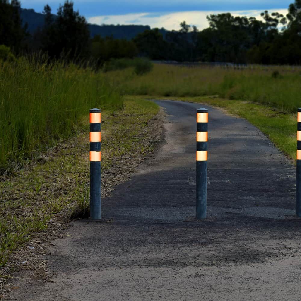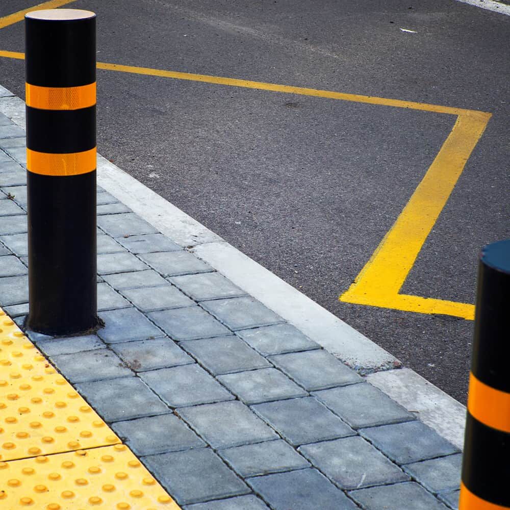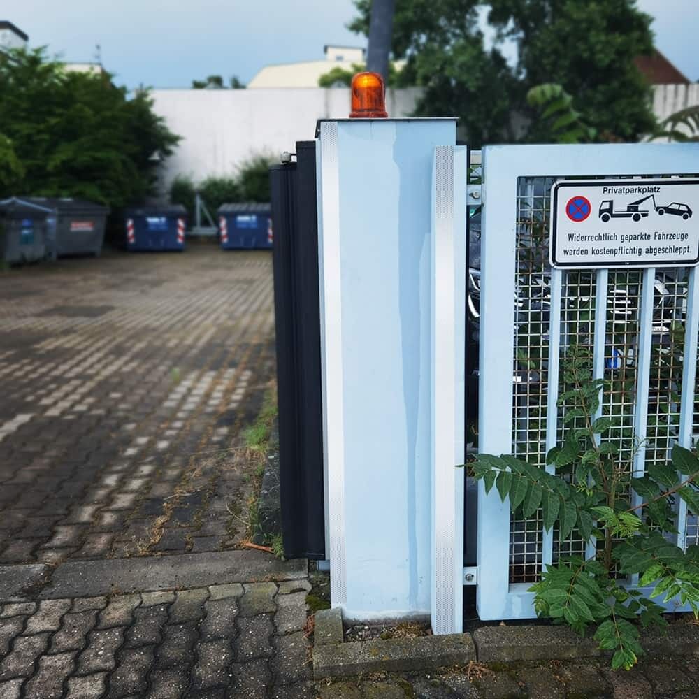 • Markierungen im Außenbereich, z. B. an Toreinfahrten, Schranken, Pfosten