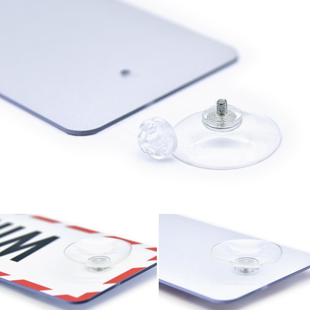 Für die sehr flexible Nutzung bieten wir die Ausführung des Hinweisschildes auf einer wetterfesten, bruchsicheren und dennoch sehr leichten IMPEX®-Polycarbonatplatte mit zwei Saugnäpfen. Diese Variante lässt sich bei Bedarf unkompliziert und in kürzester Zeit sowohl von innen, z. B. an der Heckscheibe, als auch von außen anbringen und wieder entfernen. Um einem Verlust und den damit verbundenen Risiken (auch für die anderen Verkehrsteilnehmer) während der Fahrt vorzubeugen, raten wir, die außen am Fahrzeug angebrachten Hinweisschilder unbedingt vor Fahrtantritt zu entfernen.