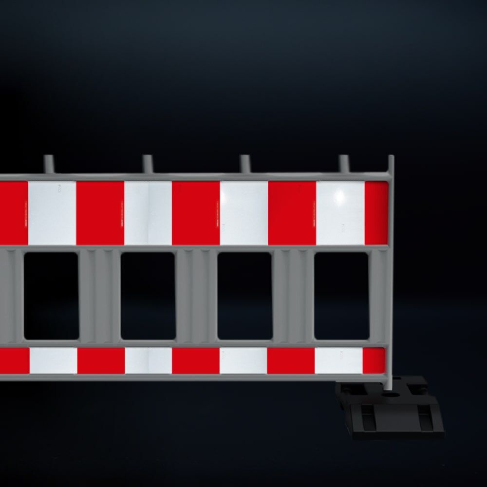 Die Ersatzfolien für Schrankenzäune sind auf 2 m zugeschnitten und passend für den oberen und unteren Bereich der Absperrschranken in den Breiten 250 mm und 100 mm erhältlich.