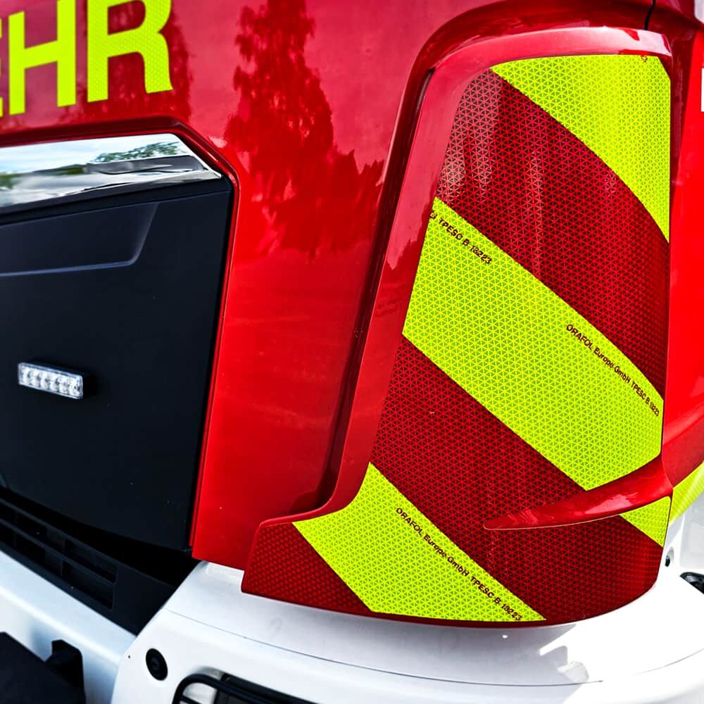 Nur mit Ausnahmegenehmigung mit Bezug auf DIN 14502-3 verwendbar. Die hier vom Hersteller gewählte Farbbezeichnung fluor-lime entspricht der in den Ausnahmegenehmigungen geforderten fluoreszierend gelben Farbe.