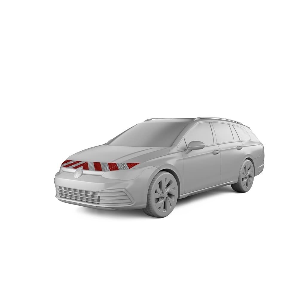 Die passgenauen Warnmarkierungszuschnitte für den VW Golf VIII Variant ab Baujahr 2020 sind als Set für die vollständige Markierung ihres Fahrzeugs erhältlich oder als einzelne Komponenten für Heck, Front oder die Seiten.